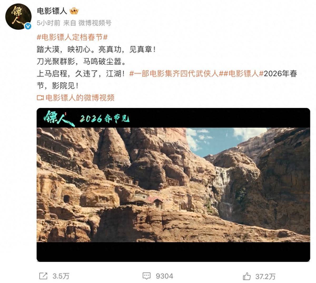 1月19日,《镖东谈主:风起大漠》官宣定档的音信一出,径直燃烧全网武侠迷的温和。
