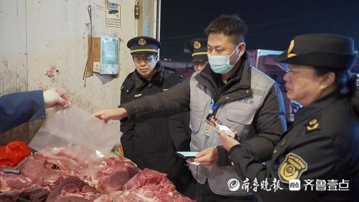 为久了贯彻落实全省肉及肉成品隆起问题整治职责部署,严厉打击肉类限制行恶非法计较步履,切实保险市民饮食安全,3月14日凌晨,青岛市阛阓监管部门集结农业农村、公安等部门构成集结国法组,开展夜查步履,对全市肉类批发阛阓及生猪宰杀企业开展全笼罩突击稽查,用步履督察市民“舌尖上的安全”。