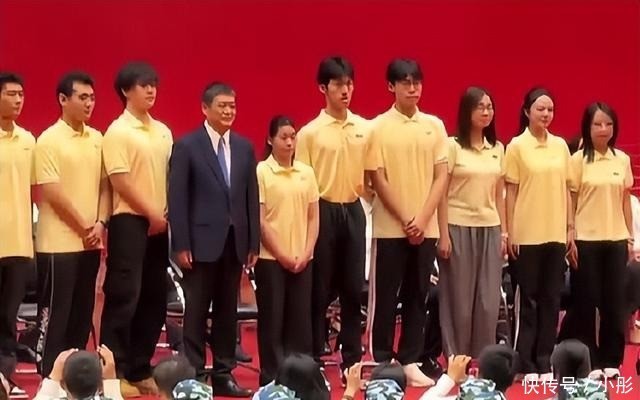 校长上台为这11个开放员受奖,全红婵侧头看着控制的小伙伴获奖,发自内心为群众欢叫。