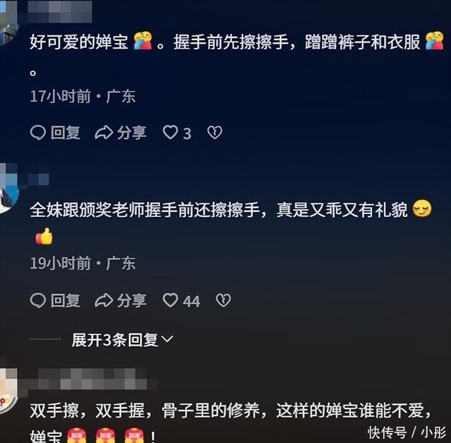 而等校长走向我方的时候,全红婵才意志该我方领奖了,于是她下意志双手擦了擦裤子,然后再双手去接校长颁发的文凭。