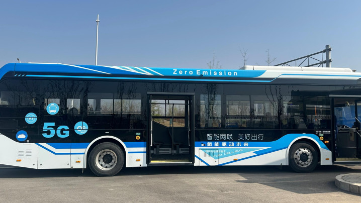 宇通新式智能巴士。东说念主民网记者王绍绍摄