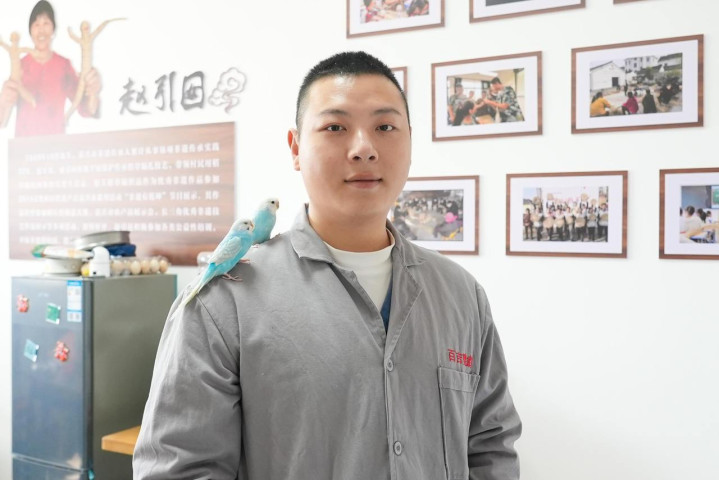 如今,他在浙江海盐的青莲寺村里找到了属于我方的“归宿”,成了1000多对鹦鹉的“国王”。