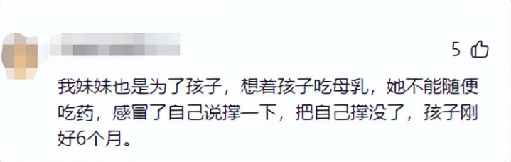 我妹妹亦然为了孩子,念念着孩子吃母乳,她不行疏漏吃药,伤风了我方说撑一下,把我方撑没了,孩子刚好6个月。