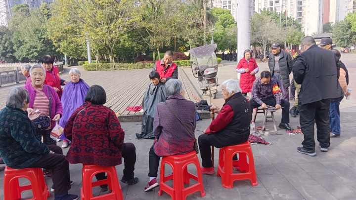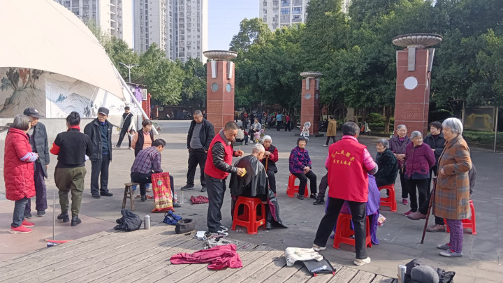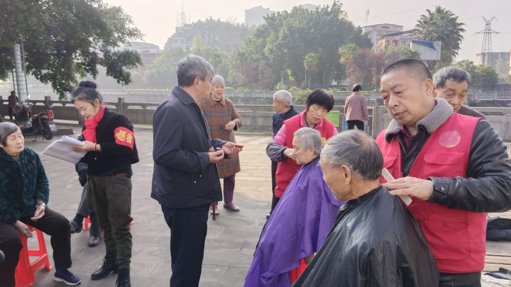 上昼9点,志愿者自带器用抵达现场,老眺望去看见不少住户在此等候,志愿者坐窝配置好奇迹摊位。剃头区,82岁的陈爷爷坐在塑料凳上笑着对剃头师说:“贫寒剪得利落点,下周男儿回家,思让他望望我精神的状貌。”暖阳下,剃头师父手法娴熟,剪刀轻舞,斑白的发丝纷纷滑落。不顷刻间,陈爷爷的发型变得澄清利落,神采飞扬。“这技巧真不赖!比剃头店剪得还合情意!”他眉眼舒展,笑意融融的说说念。